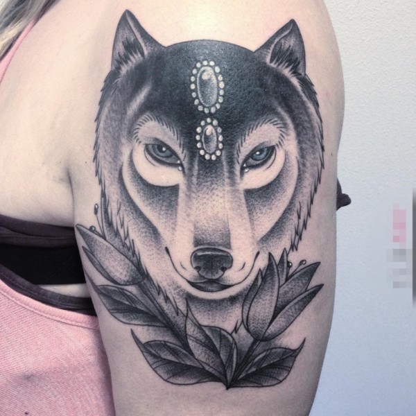 多款关于狼头的黑色素描点刺技巧创意个性纹身图案