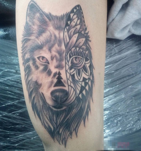多款关于狼头的黑色素描点刺技巧创意个性纹身图案