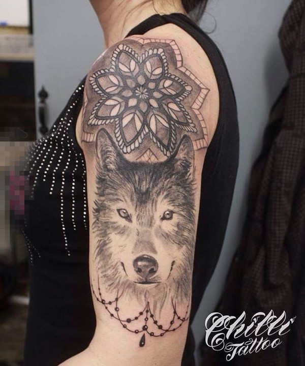 多款关于狼头的黑色素描点刺技巧创意个性纹身图案