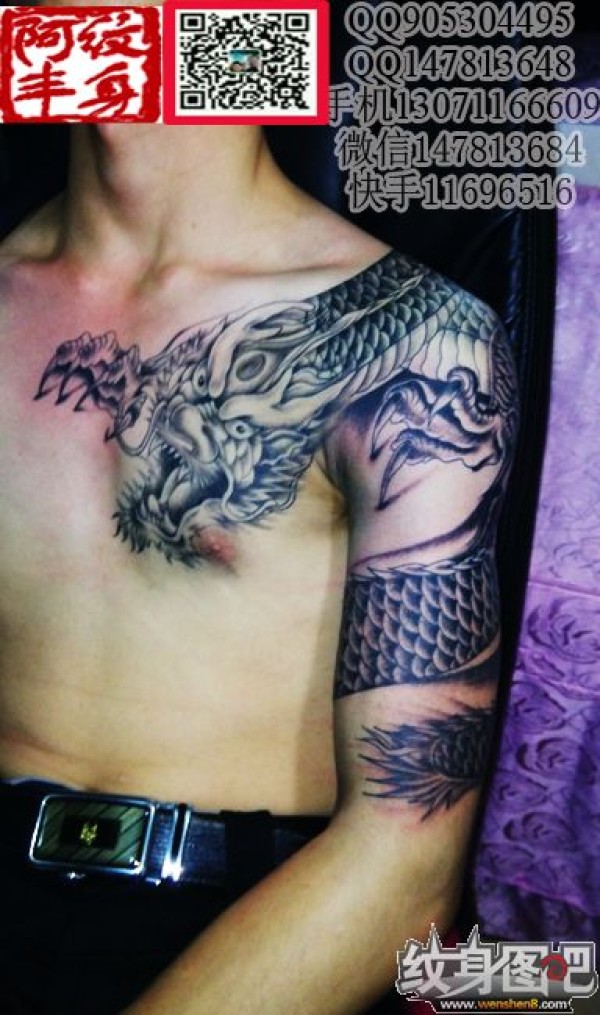过肩龙纹身 肩部纹身 肩部黑白纹身 肩部彩色纹身 肩部纹身图案 阿丰纹身 丰台纹身