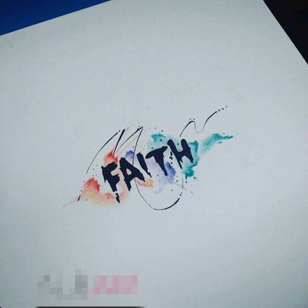 黑色线条花体英文水彩泼墨文艺纹身手稿
