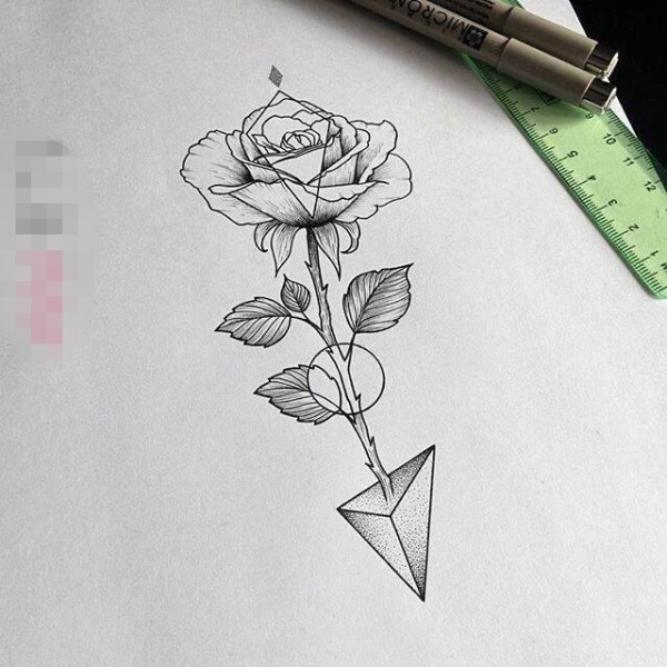 个性的黑色几何点刺简单线条植物花朵纹身手稿