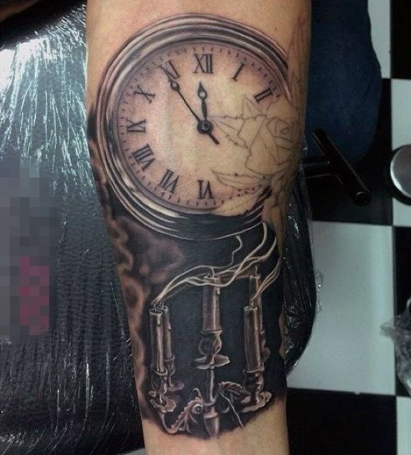 多款关于钟表的黑色素描点刺技巧精美纹身图案