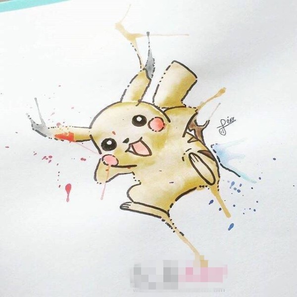 彩绘水彩创意个性文艺小清新动漫卡通皮卡丘纹身手稿