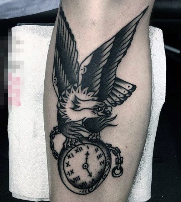 多款关于钟表的黑色素描点刺技巧创意个性纹身图案