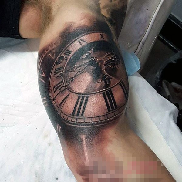 多款关于钟表的黑色素描点刺技巧创意个性纹身图案