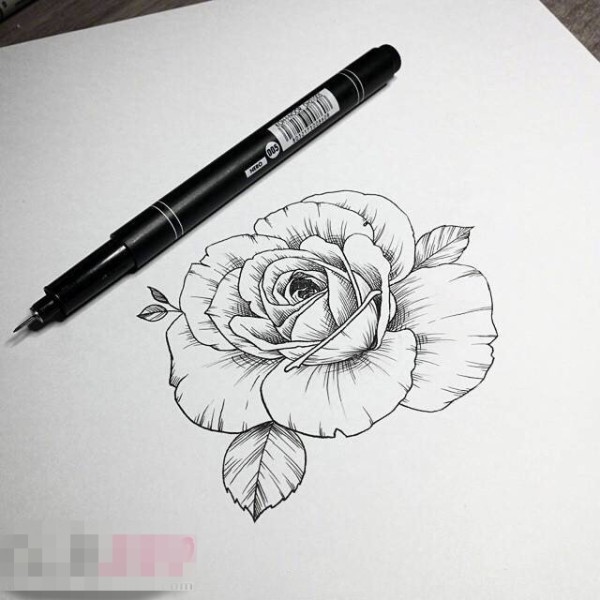 唯美的黑色简单线条植物素材玫瑰纹身手稿