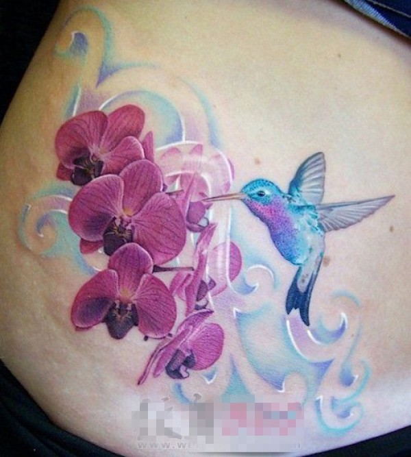 分享一款腰部时尚性感的蝶恋花纹身图案_腰部纹身图案大全_纹身图吧