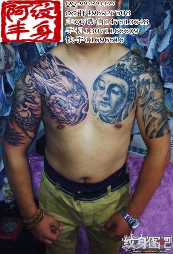 两个板甲纹身 肩部纹身 肩部黑白纹身 肩部彩色纹身 肩部纹身图案 阿丰纹身 丰台纹身