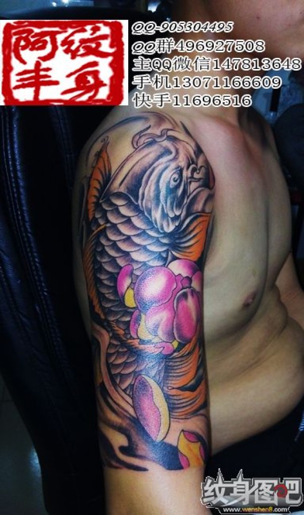 肩部鱼纹身 肩部纹身 肩部黑白纹身 肩部彩色纹身 肩部纹身图案 阿丰纹身 丰台纹身