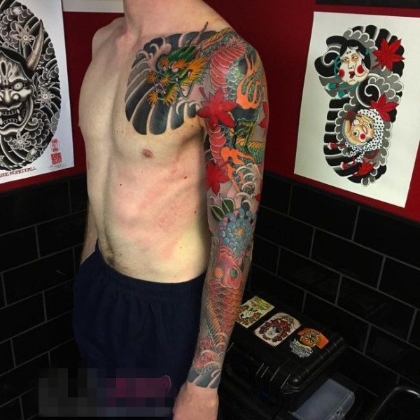 日式手彫刺青作品—半甲龙很感谢客户认可手彫刺青,手彫是日本纹身的手工雕刻技术,时间可以追溯到日本17世纪的江户时代。19世纪,手彫技术被日本黑帮挪用,被用作入会仪式,象征着从此就是江湖中人。在日式传统