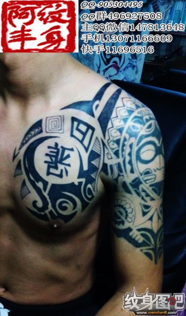 图腾板甲纹身 肩部图腾纹身 肩部纹身 肩部黑白纹身 肩部彩色纹身 肩部纹身图案 阿丰纹身 丰台纹身