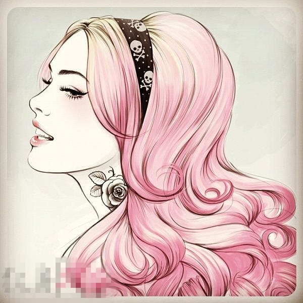 多款关于漂亮女生的彩绘抽象线条人物肖像纹身手稿