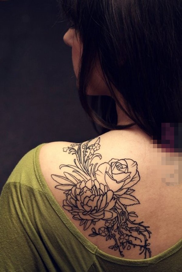 后肩唯美花藤英文图案图片_植物纹身图案大全_纹身图吧