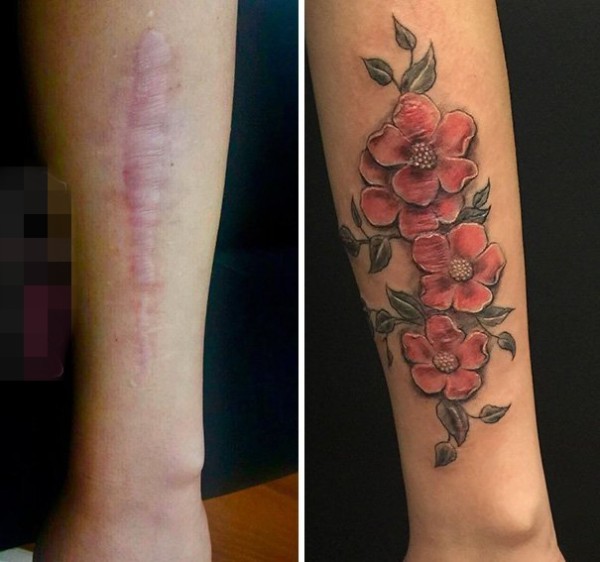 让人感动的伤疤覆盖创意个性唯美纹身图案