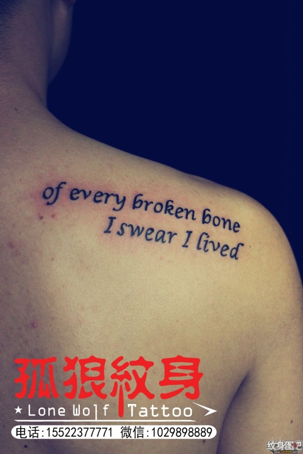 宝坻最好纹身店 肩胛英文纹身 孤狼纹身工作室作品 天津