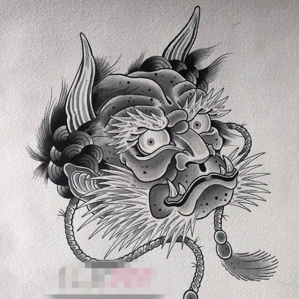 龙纹身手稿_一组老传统黑灰龙手稿纹身图案