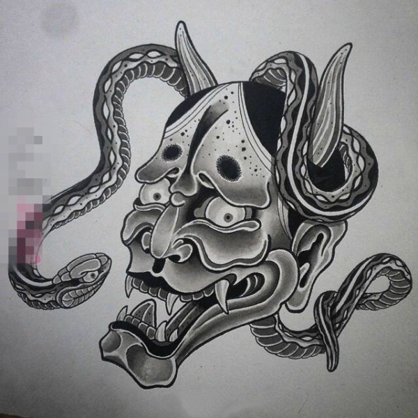 能面万媚纹身手稿_52张日式能剧面具纹身手稿图案素材欣赏