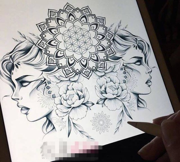 双子座纹身手稿_29张十二星座之双子座纹身图案手稿
