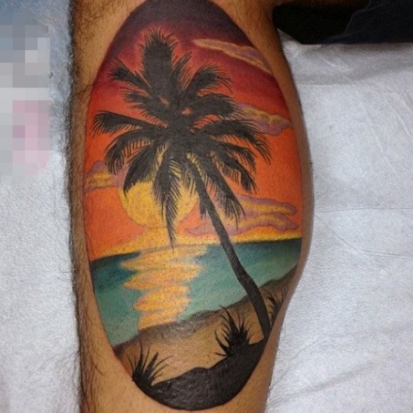 多款夕阳如丹的彩绘落日余晖风景纹身图案