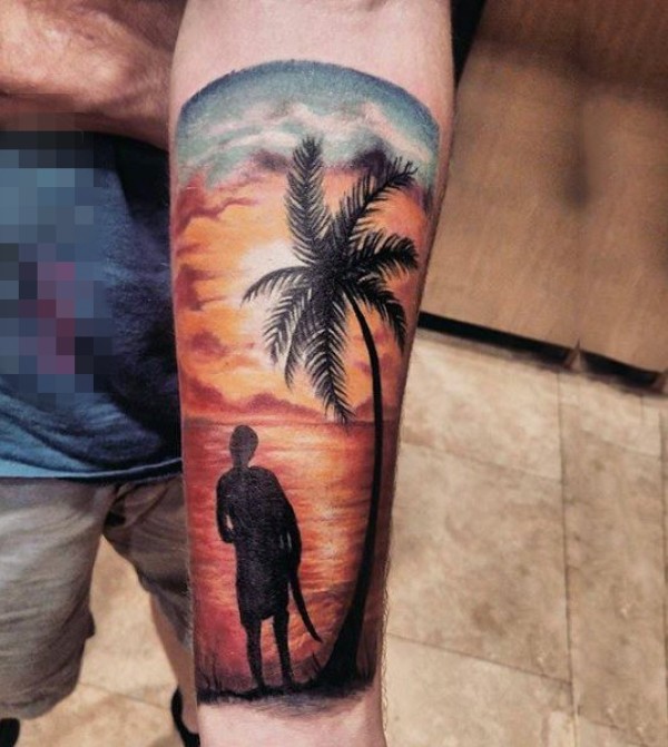 多款夕阳如丹的彩绘落日余晖风景纹身图案