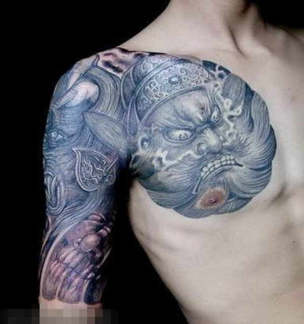 浩然正气的抽象线条传统人物钟馗纹身图案