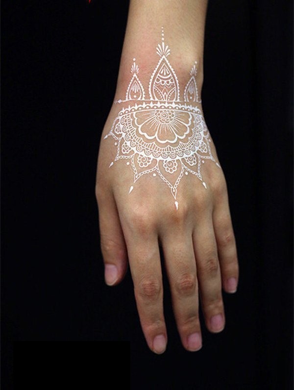 女生手腕上白色线条隐形唯美手链纹身图案