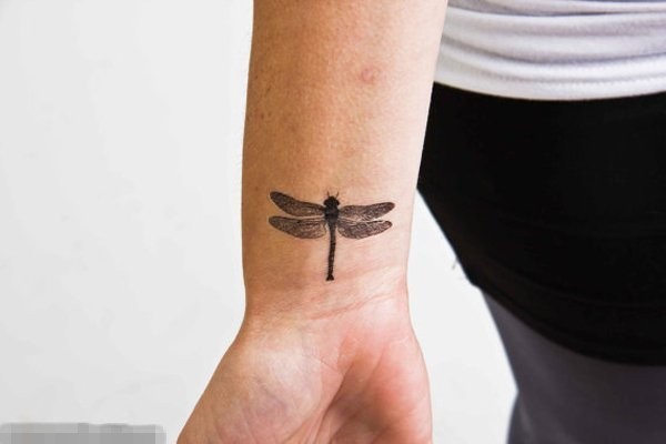 男生手腕上黑色点刺小动物蜻蜓纹身图片