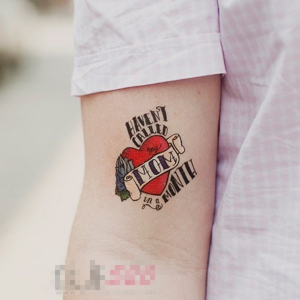 男生手臂上彩绘心形和英文单词纹身图片