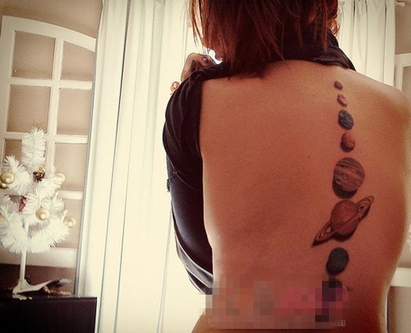 多款关于太阳系彩绘几何圆形线条星球纹身图案