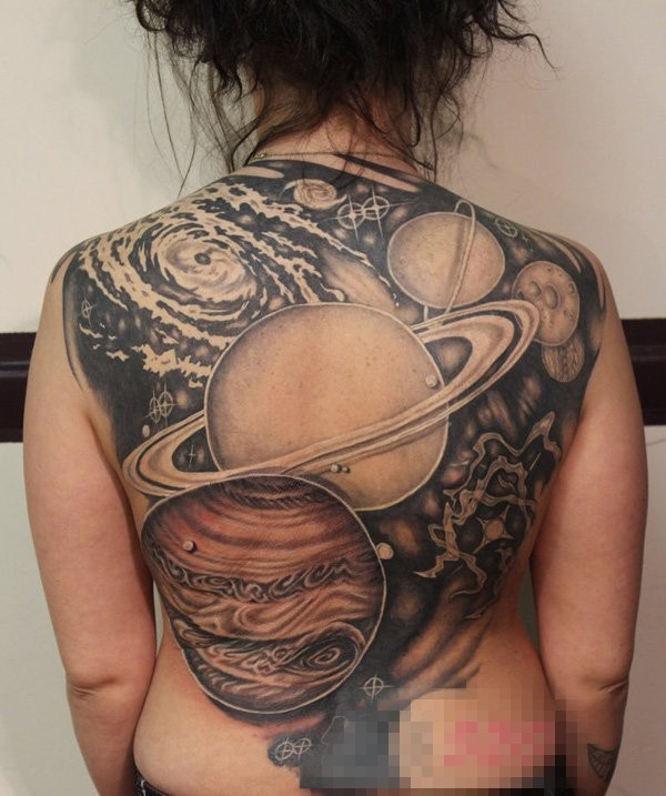 多款关于太阳系彩绘几何圆形线条星球纹身图案