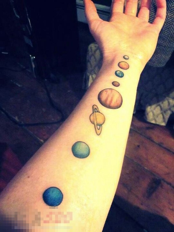 多款关于太阳系彩绘几何圆形线条星球纹身图案