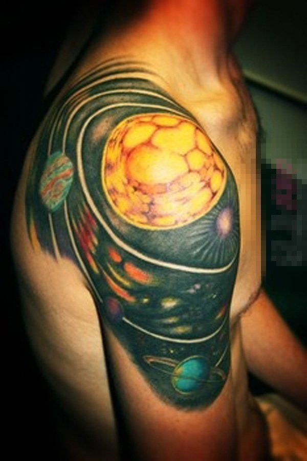 多款关于太阳系彩绘几何圆形线条星球纹身图案