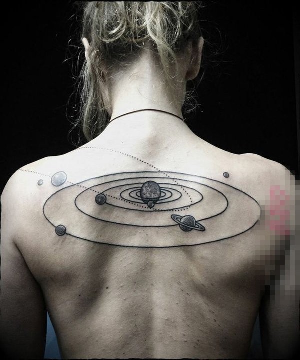 多款关于太阳系彩绘几何圆形线条星球纹身图案