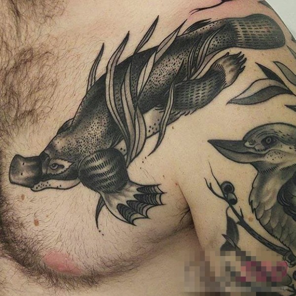 个性而富有趣味色彩的彩绘鸭嘴兽纹身图案