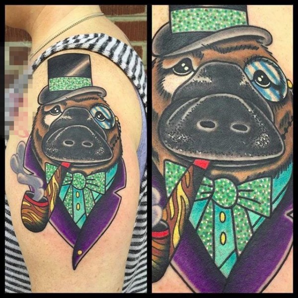 个性而富有趣味色彩的彩绘鸭嘴兽纹身图案