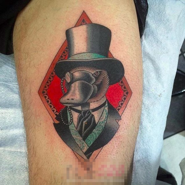 个性而富有趣味色彩的彩绘鸭嘴兽纹身图案