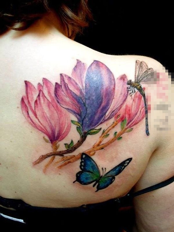 后肩唯美花藤英文图案图片_植物纹身图案大全_纹身图吧