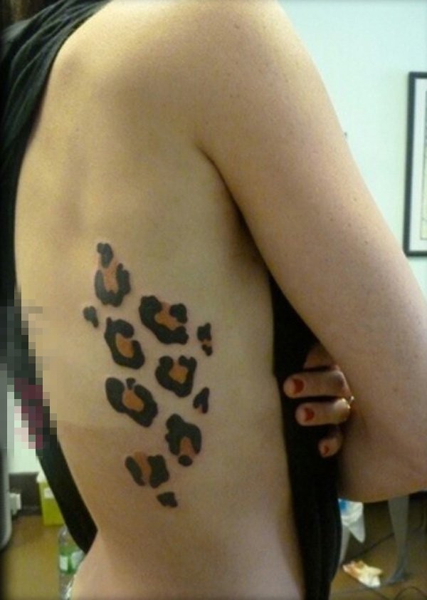 女生侧腰上彩绘几何抽象线条豹纹纹身图片