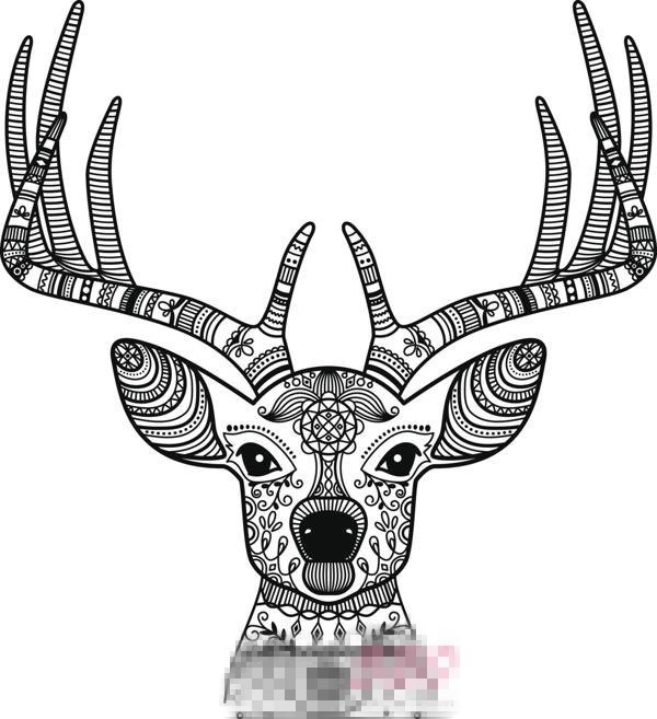 黑色线条素描创意花纹可爱麋鹿头纹身手稿