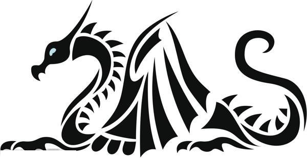 霸气的黑色几何线条小动物飞龙纹身手稿