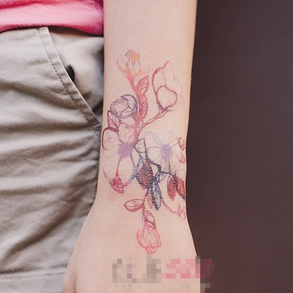 女生手臂上彩绘水彩创意唯美花朵纹身图片