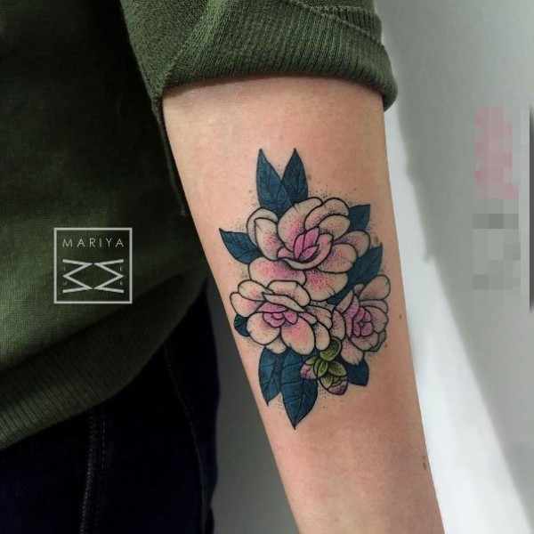 欧美玫瑰纹身 男生手臂上花朵纹身图片