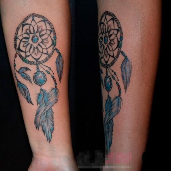 女生手臂上彩绘素描创意梦幻捕梦网纹身图片