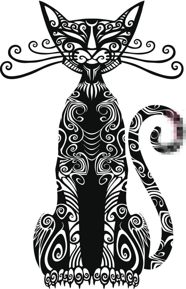 个性的黑色抽象线条小动物猫咪纹身手稿