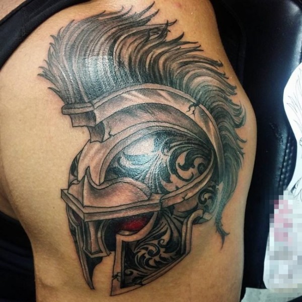 男生手臂上黑灰素描点刺技巧创意斯巴达霸气纹身图片