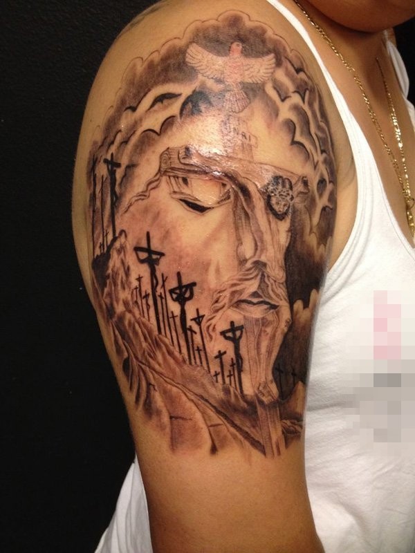 多款关于宗教的黑灰点刺人物肖像耶稣纹身图案
