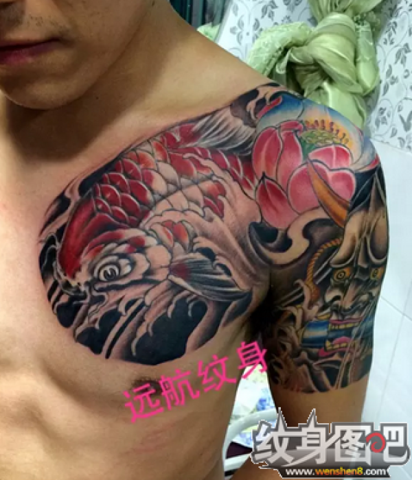 大场纹身店,般若纹身半钾,鲤鱼半钾纹身,远航纹身