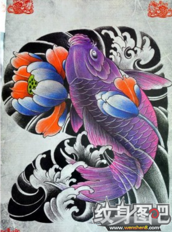 杨行纹身店,鲤鱼荷花半钾纹身,上海远航纹身