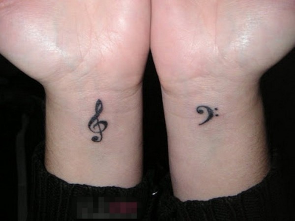 女生手腕上黑色线条创意文艺音符小图案纹身图片